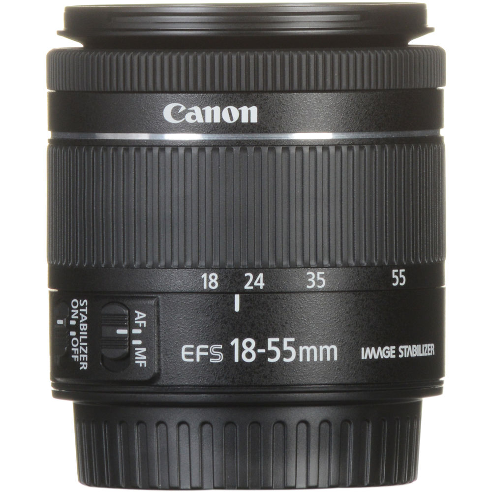 A versatile standard zoom for Canon APS-C-format DSLRs, the EF-S 18-55mm is a sleek and flexible option for everyday shooting. Spanning a 28.8-88mm equivalent focal length range, this lens covers wide-angle to portrait-length perspectives, and features an Optical Image Stabilizer to minimize the appearance of camera shake by up to four stops for sharper handheld shooting. One aspherical element is featured in the optical design to improve sharpness and resolution by minimizing spherical aberrations and distortion, and a Super Spectra coating has also been applied to suppress flare and ghosting. for APS-C-format Canon DSLRs and provides a 28.8-88mm equivalent focal length range.